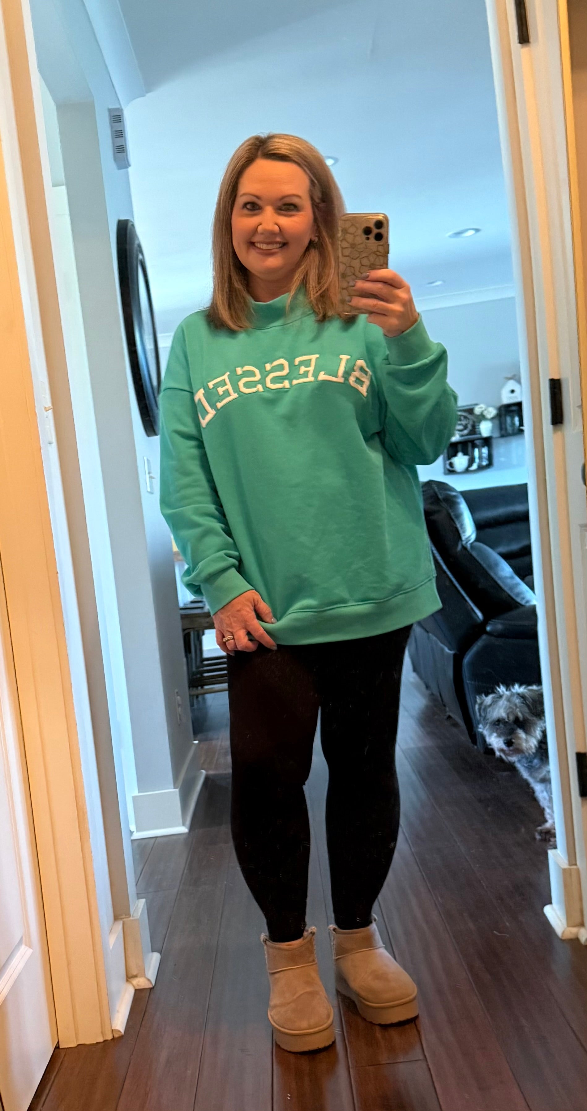 BLESSED EMBROIDERED MOCK NECK SWEATSHIRT