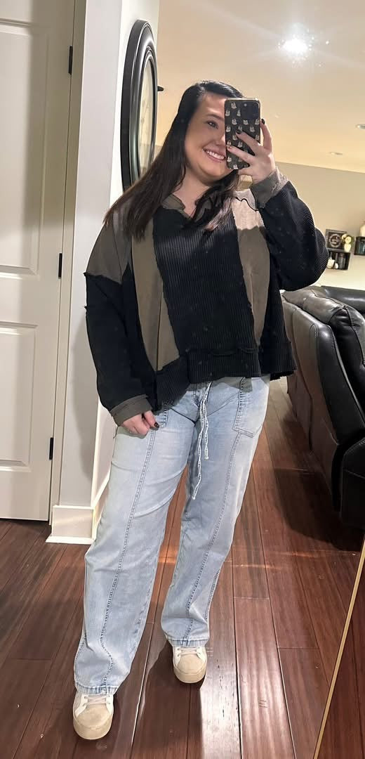 EXPOSED STITCH DETAIL DRAWSTRING BARREL JEANS