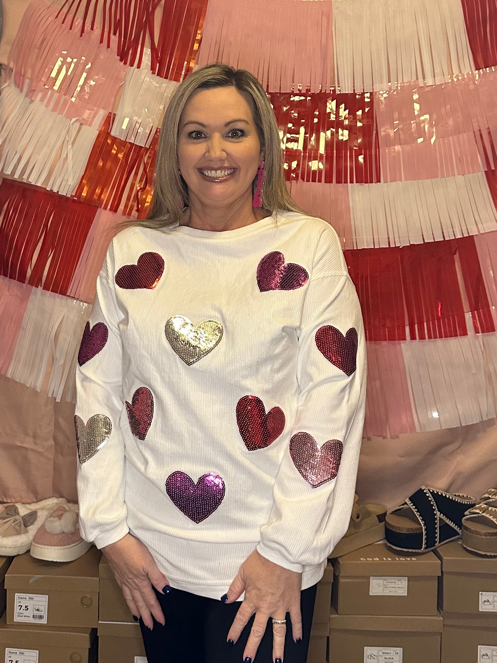 HEART CORDED RIBBED PULLOVER