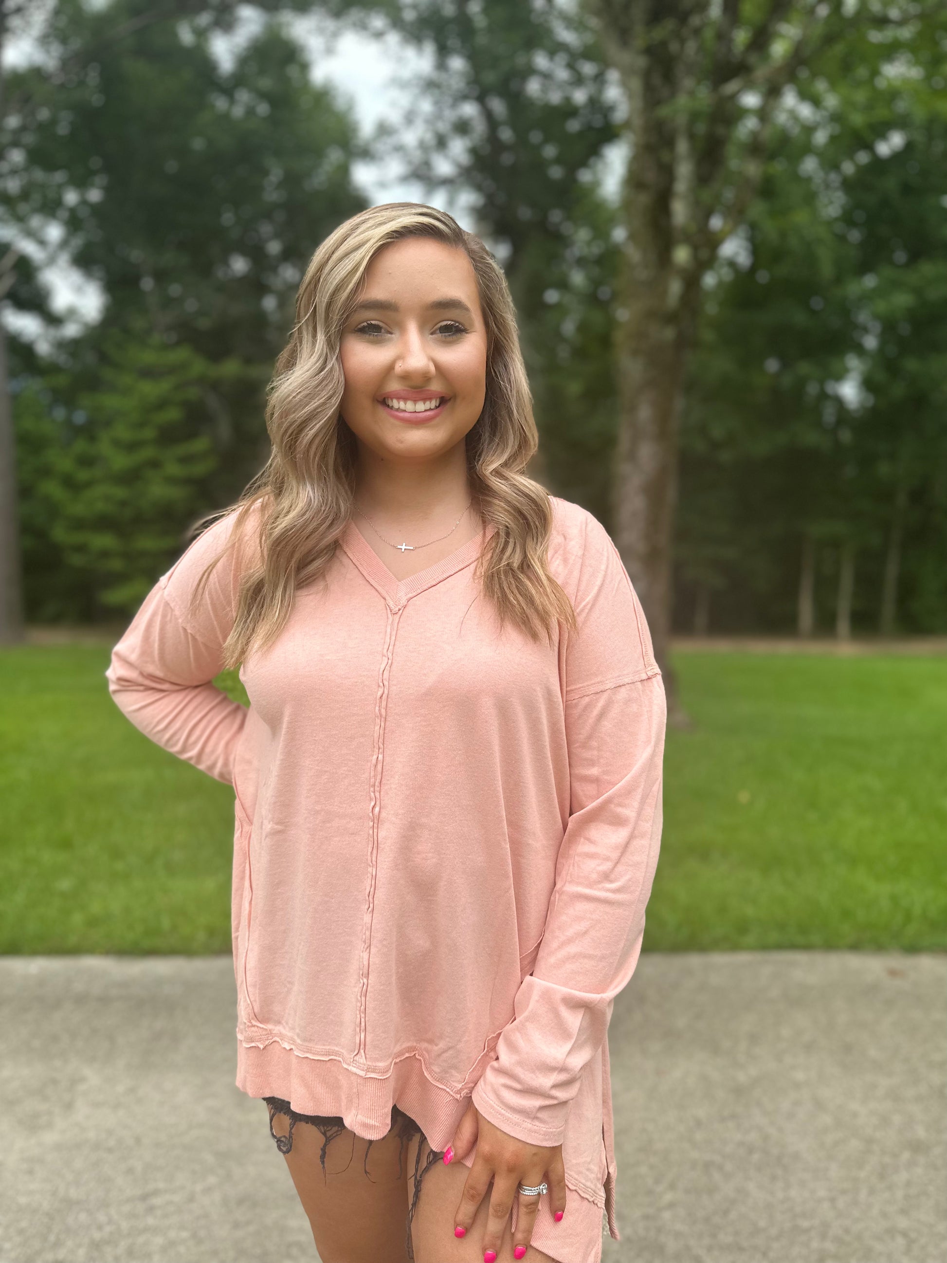 Long Sleeve V Neck Dropped Shoulders with Side Slits