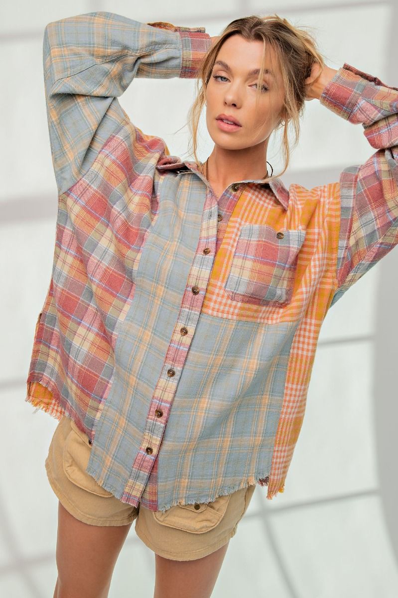 -COLOR BLOCKED AND MIX N MATCH PLAID STYLE